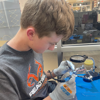 Beyond robotics and programming, Liam is expanding his technical skills by learning how to solder. He recently built a motherboard for an LED light project, gaining valuable hands-on experience with electronics and circuitry.